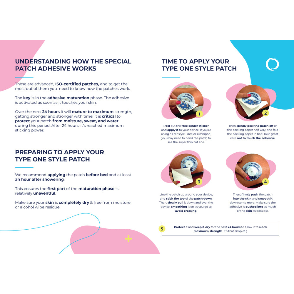 Decorate and protect your CGM or insulin pump with these fun, functional blue mandala patches. Designed to fit securely around your device, they help protect against knocks, movement and water exposure, keeping your sensor or pump in place during exercise, showers and everyday life.