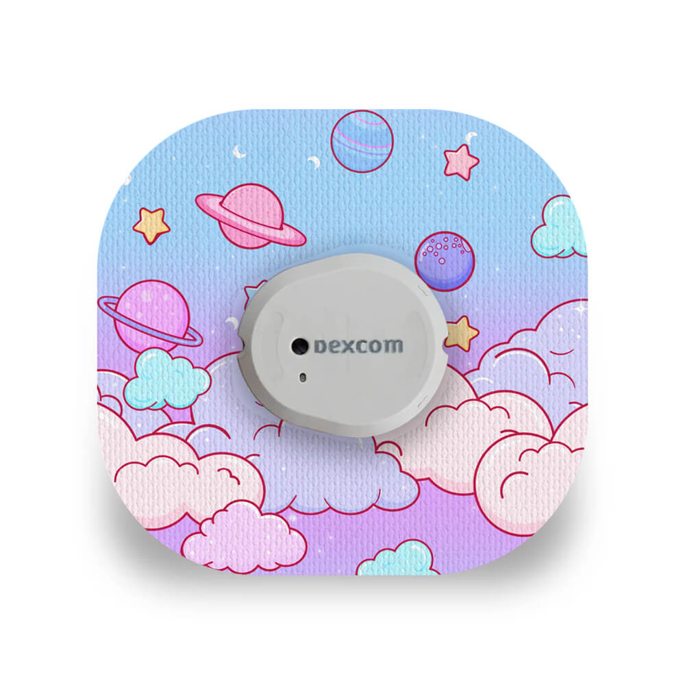 Decorate and protect your CGM or insulin pump with these fun, functional cosmic clouds design patches. Designed to fit securely around your device, they help protect against knocks, movement and water exposure, keeping your sensor or pump in place during exercise, showers and everyday life.